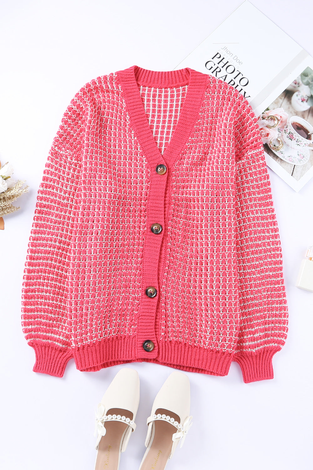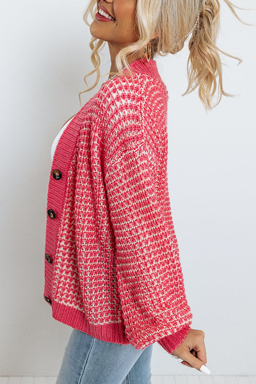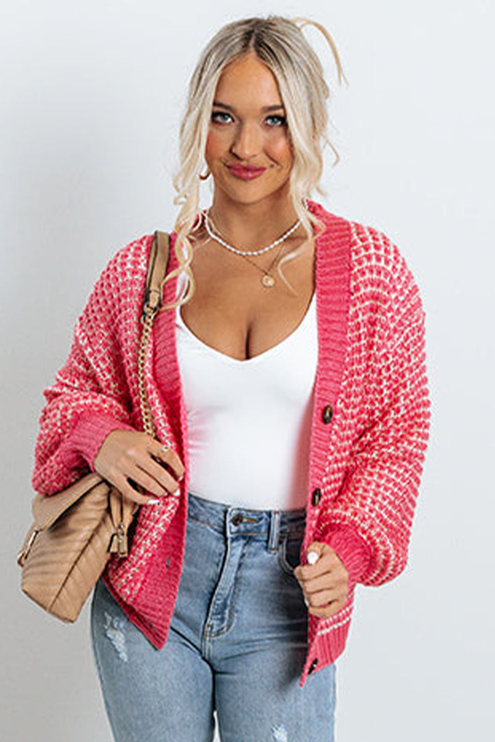 - Layer up fabulously this Valentine's Day with our darling hot pink Neck Buttons Knit Cardigan