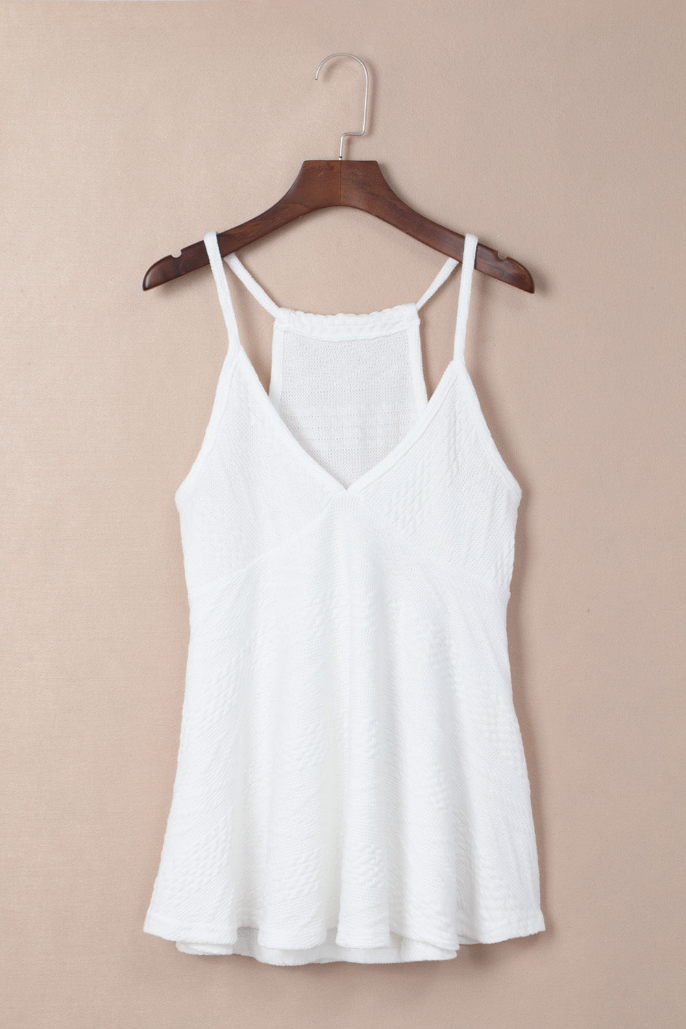 Beige Knitted Ruffled Spaghetti Strap V Neck Tank Top