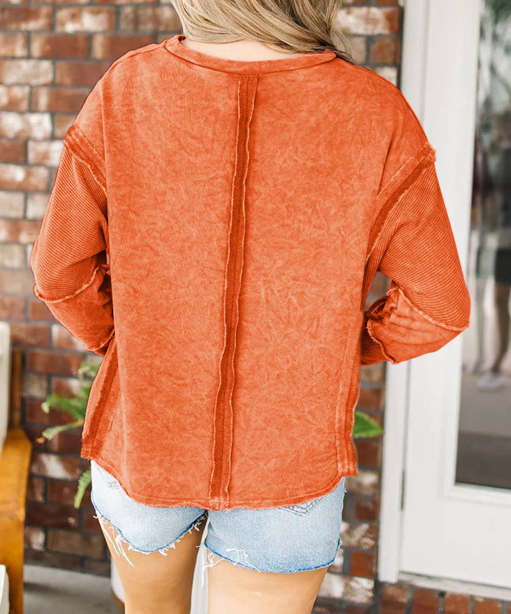 Exposed Seamed High Low Raw Edge Sweatshirt