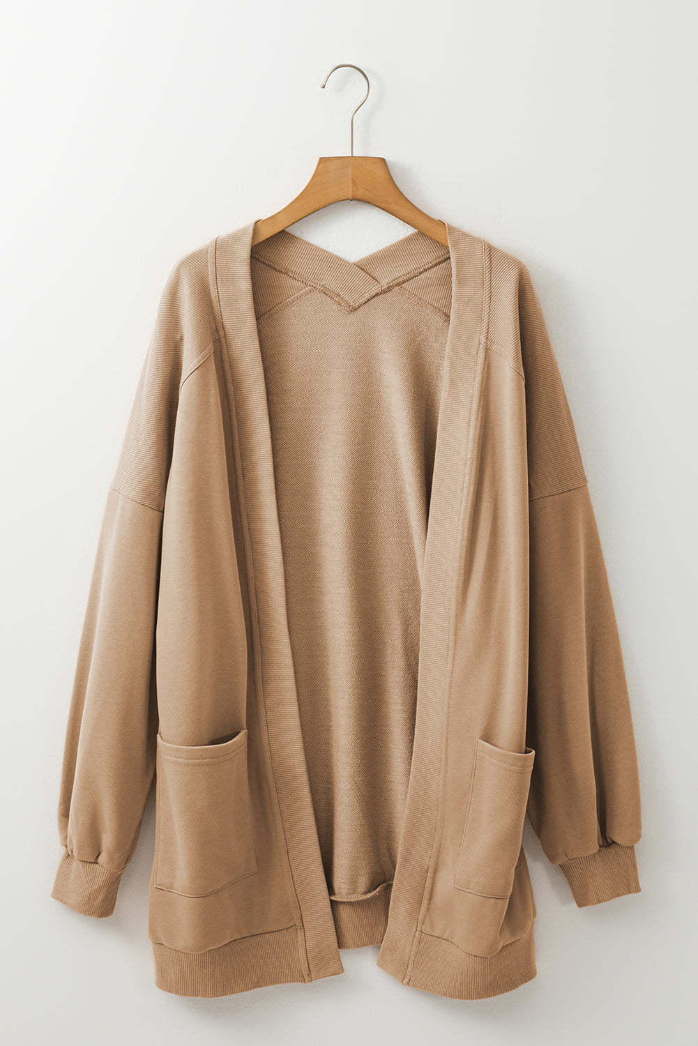 Ribbed Edge Exposed Seam Knit Cardigan with Pockets