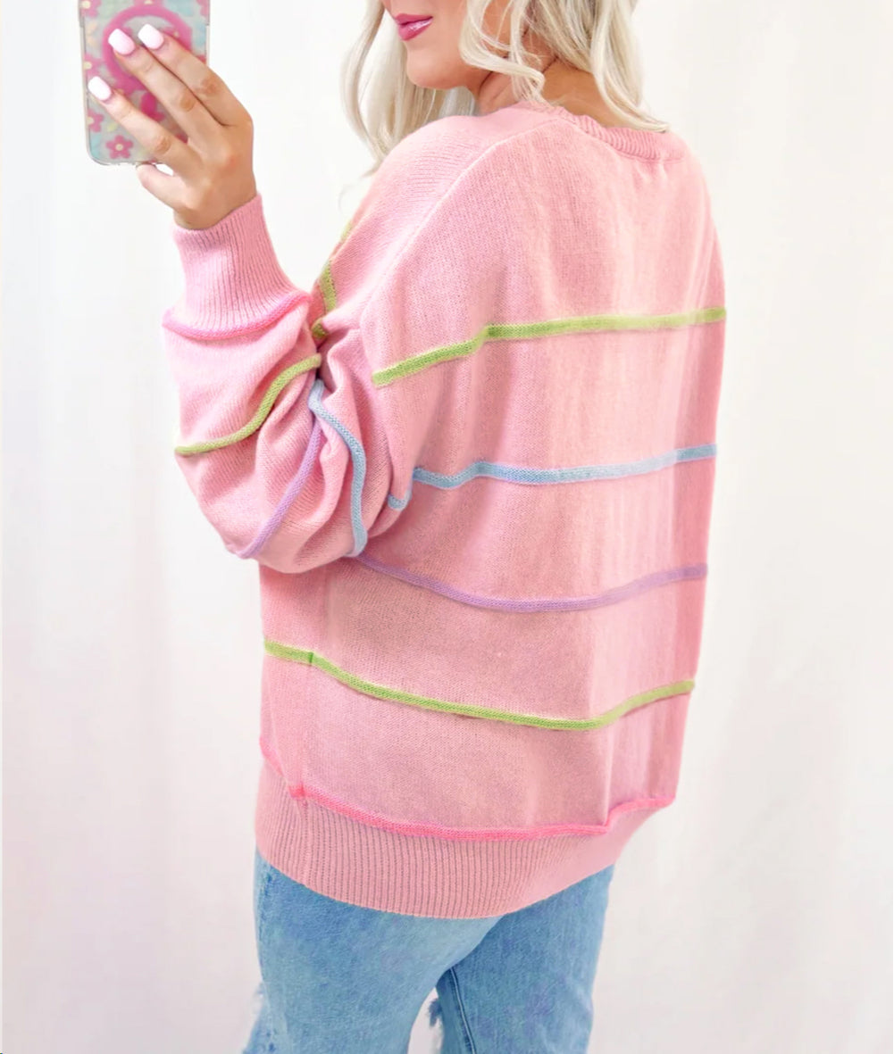 Rainbow Stripes Drop Shoulder Baggy Henley Sweater