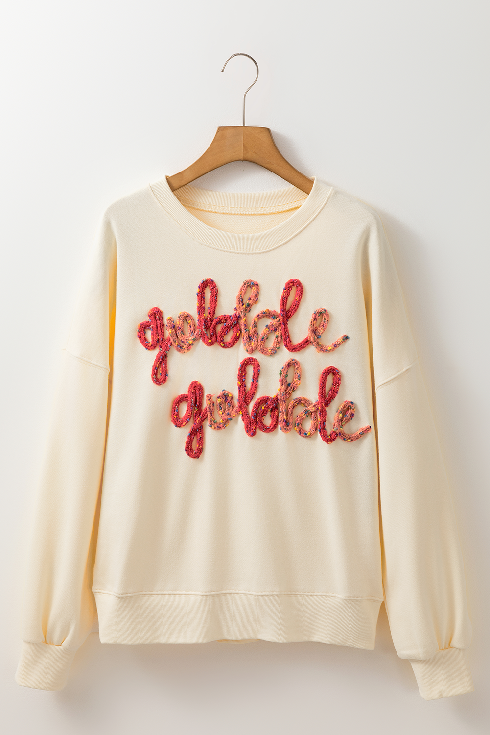 Gobble Gobble Embroidered Pattern Drop Shoulder Crew Neck Sweatshirt
