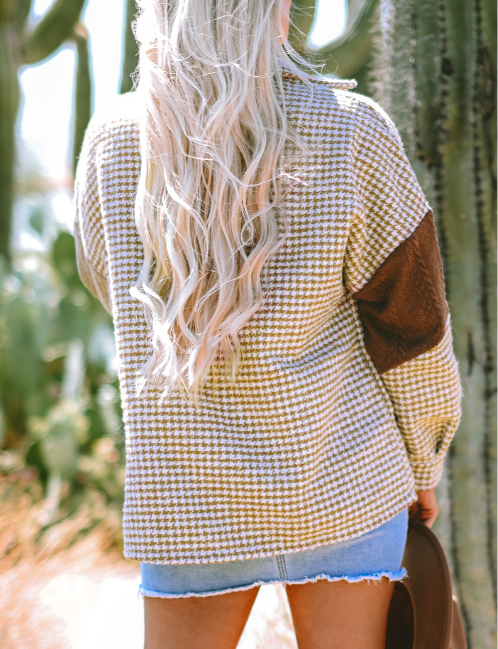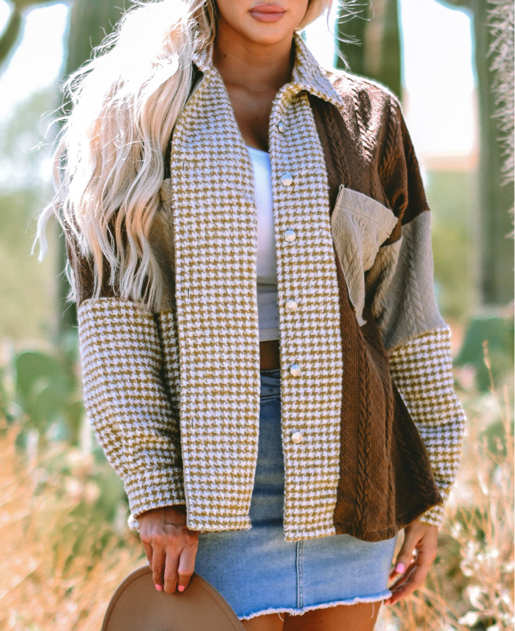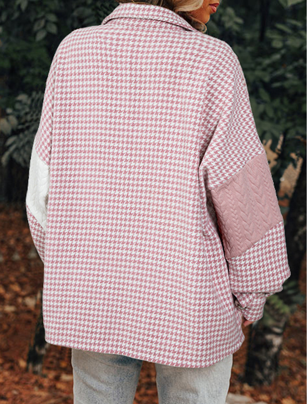 Houndstooth Color Contrast Textured Patchwork Loose Shacket