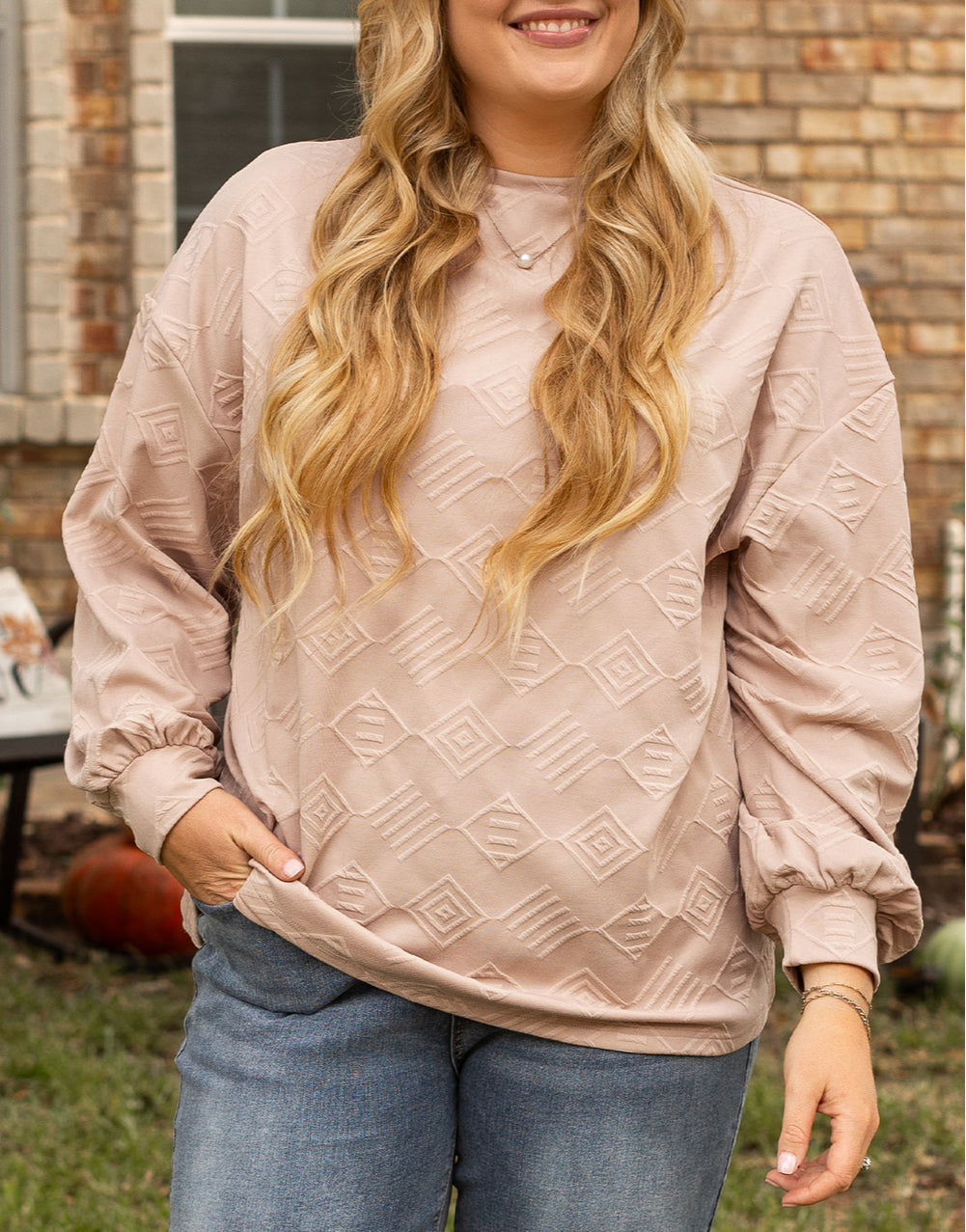 Plus Size Textured Drop Shoulder Crew Neck Sweatshirt