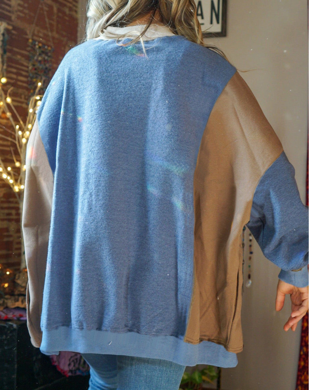 The color-block sleeves add a pop of color to your outfit.