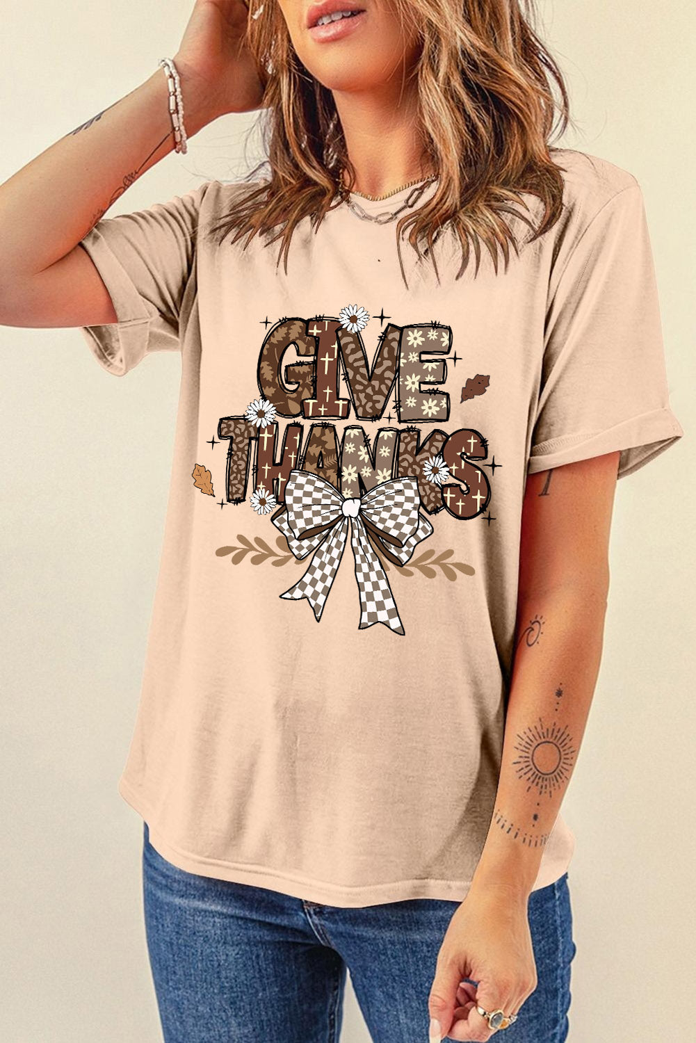 GIVE THANKS Bowknot Printed Crewneck T Shirt