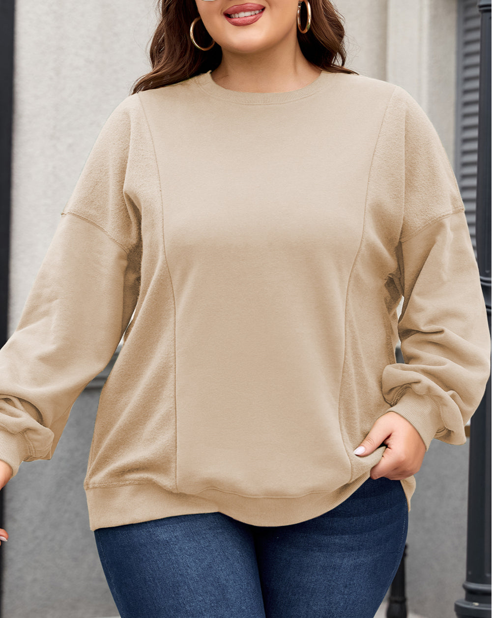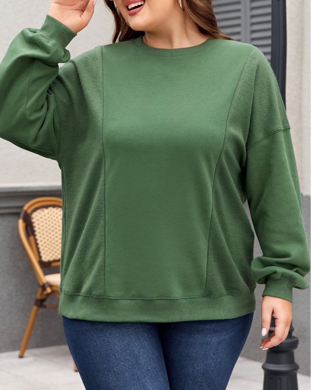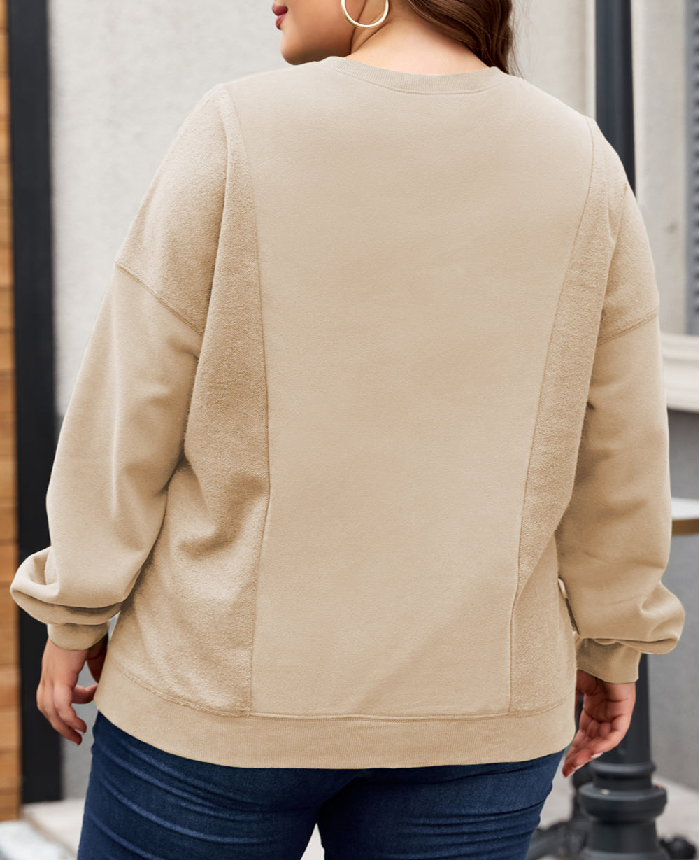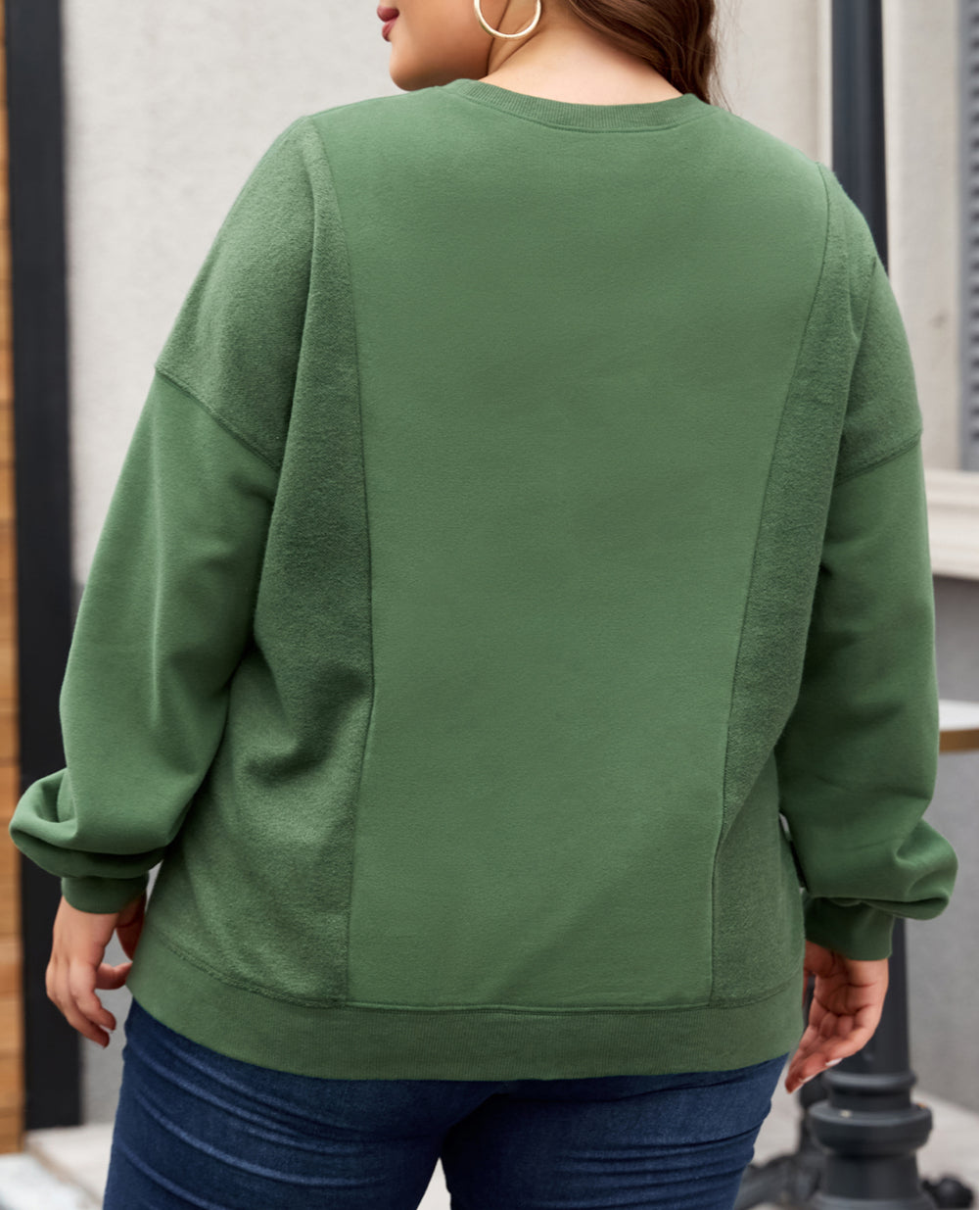 Loose Patchwork Crewneck Plus Size Sweatshirt