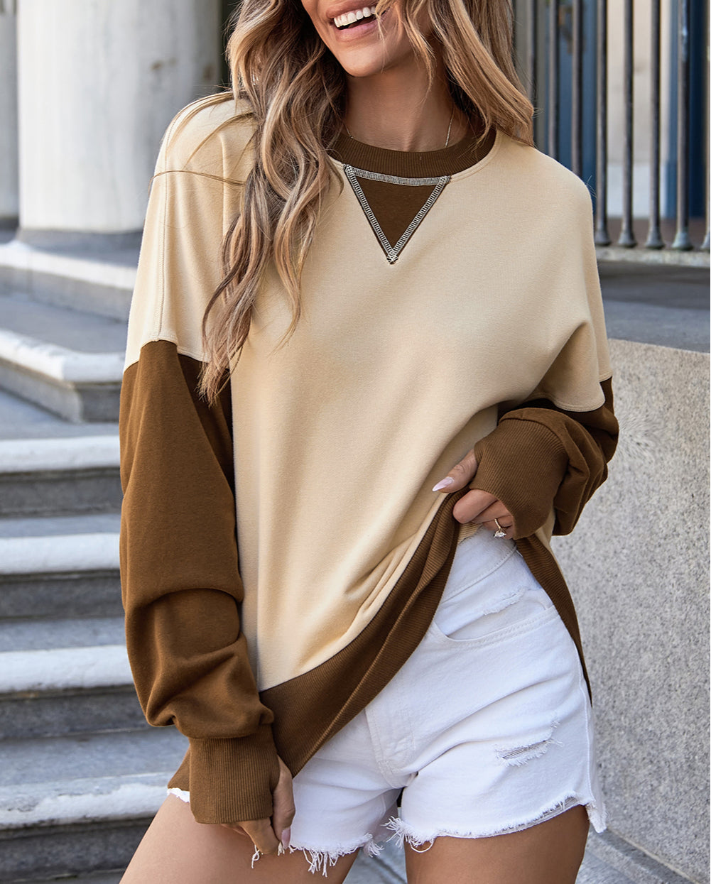 Apricot Color Block Thumbhole Sleeve Drop Shoulder Sweatshirt