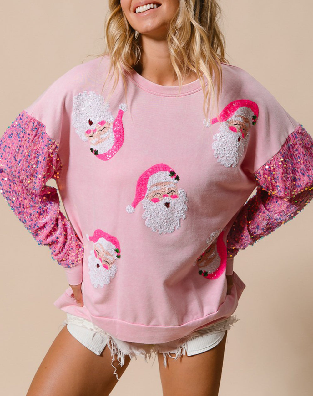 Sequined Santa Claus Long Sleeve Christmas Sweatshirt