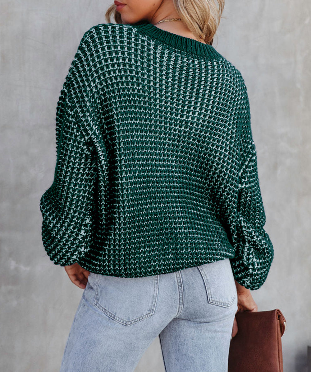 Heathered Knit Drop Shoulder Puff Sleeve Sweater
