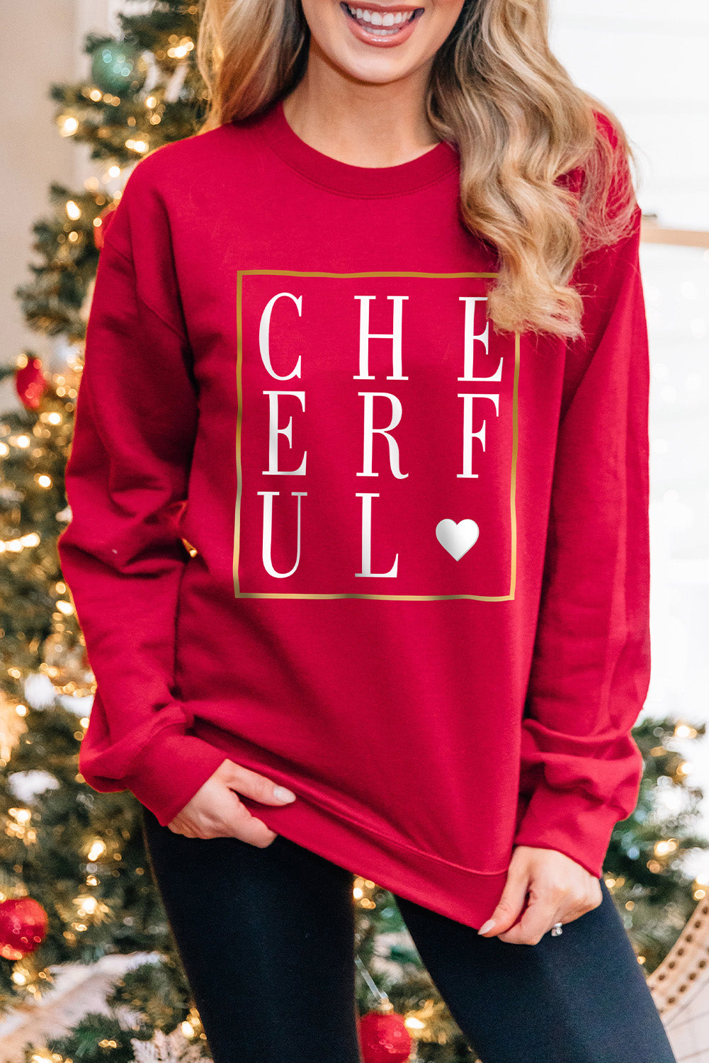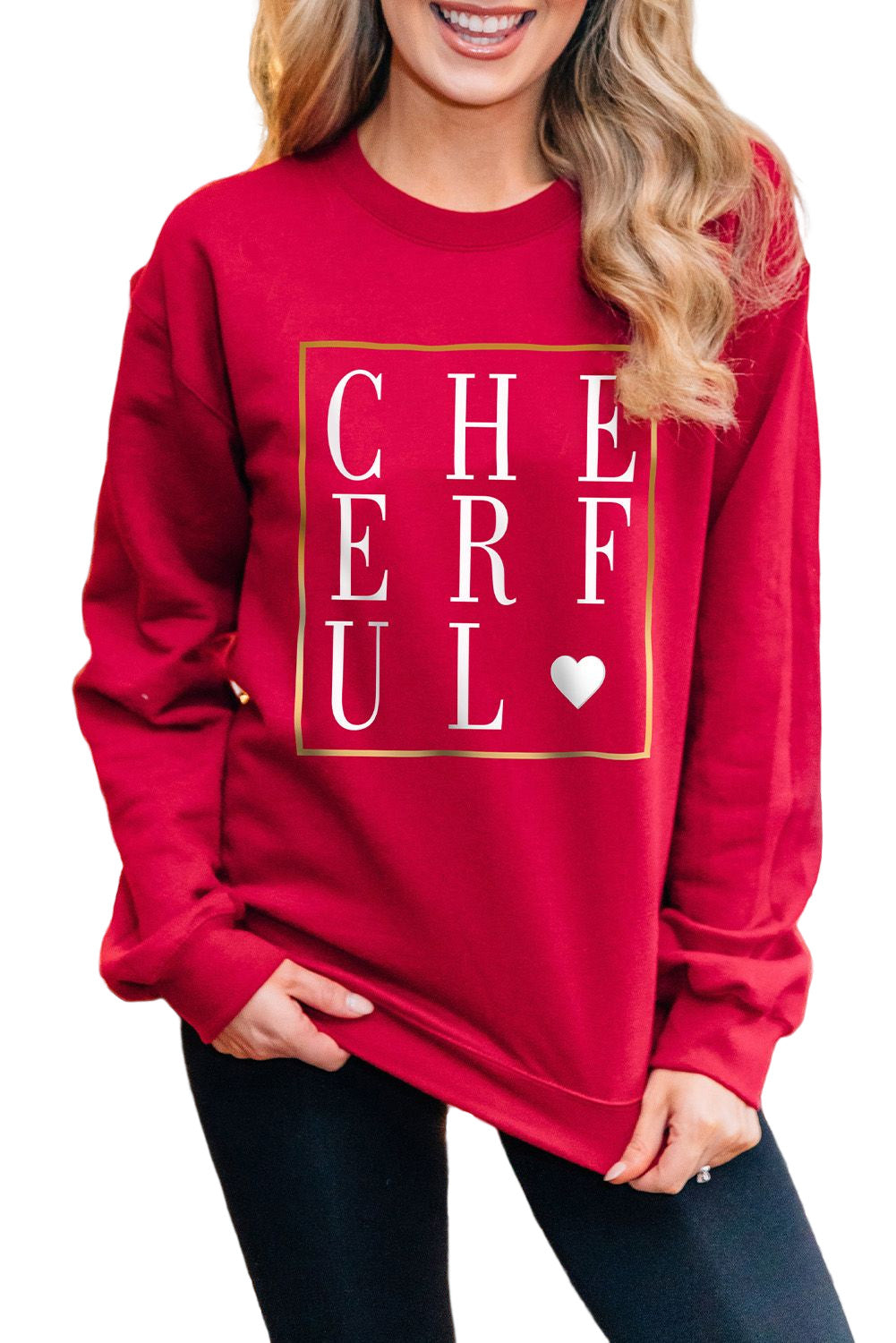 Red CHEERFUL Glitter Graphic Print Pullover Sweatshirt