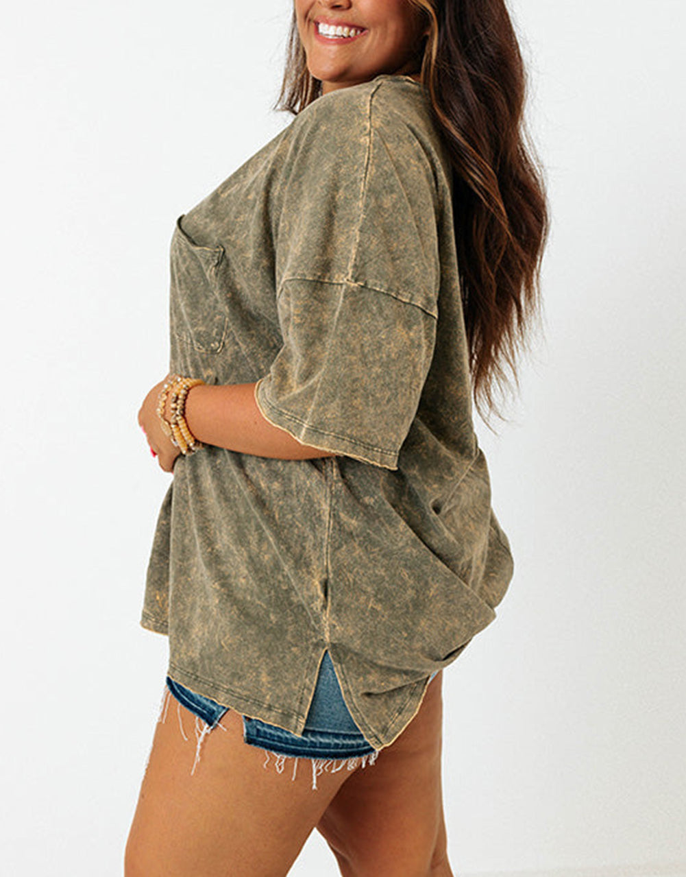 Plus Size Mineral Wash Seamed Short Sleeve T Shirt