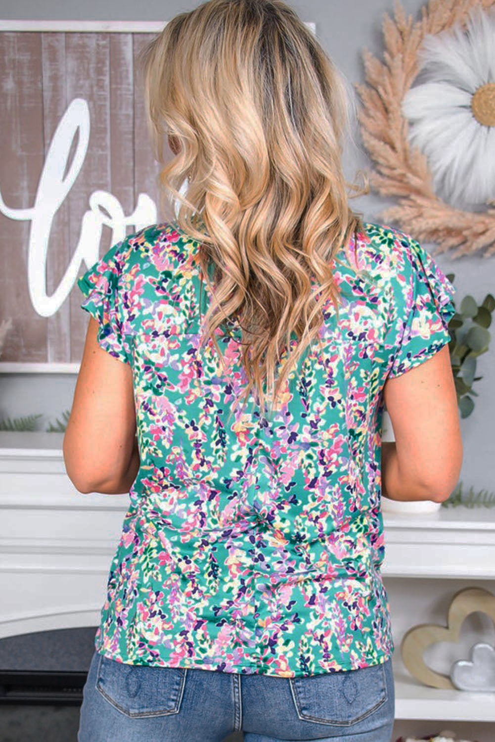 Sky Blue Floral Print Ruffled Short Sleeve Babydoll Top