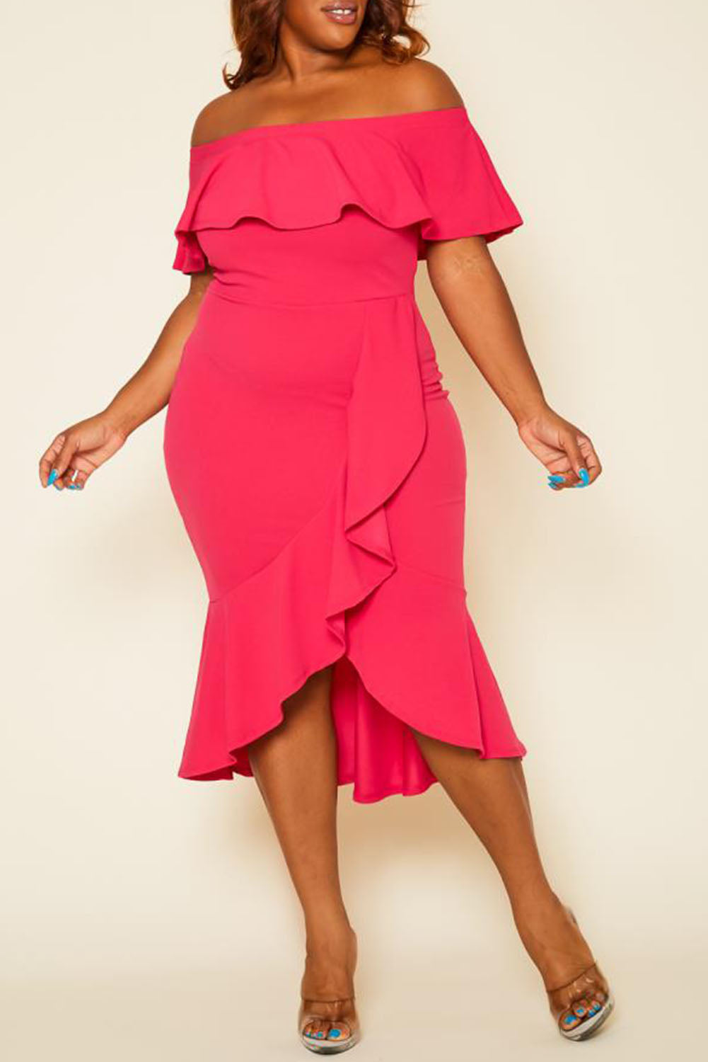 - Gorgeous plus size women's midi dress in off shoulder design is very sexy