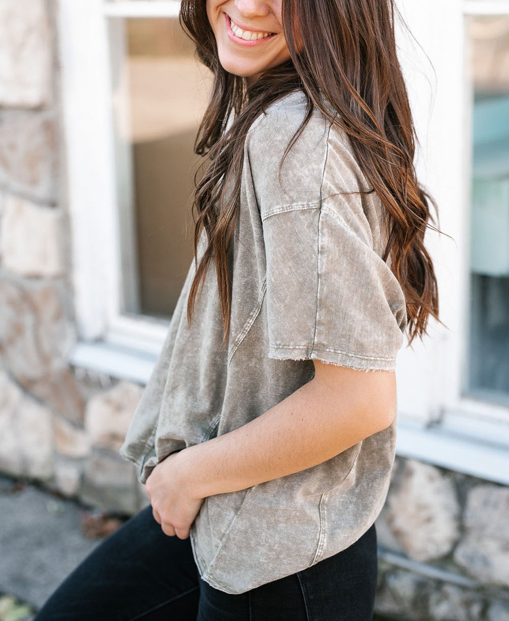 Gray Vintage Mineral Wash Splicing T-shirt