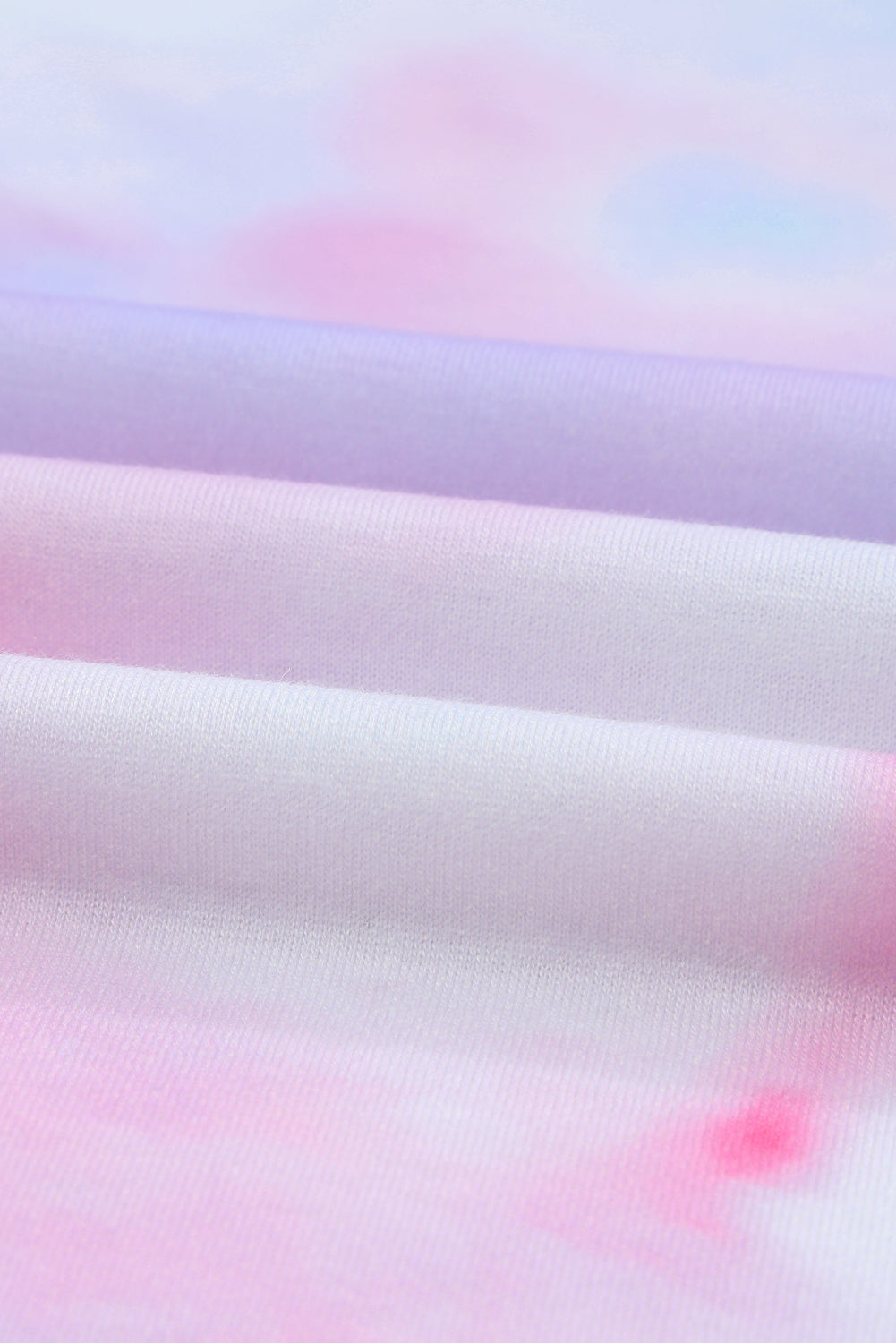 Leopard Sleeve Contrast V Neck Tie-dye Tee