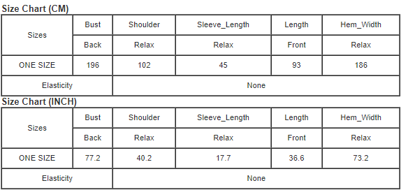•Whether it is a bell-shaped short sleeve or the edge long enough to cover the hips, it shows how loose this garment is