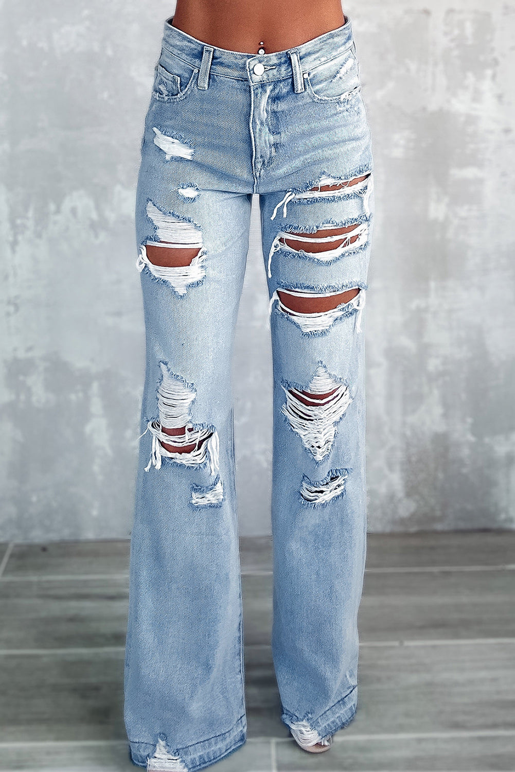Vintage Distressed Ripped Wide Leg Jeans