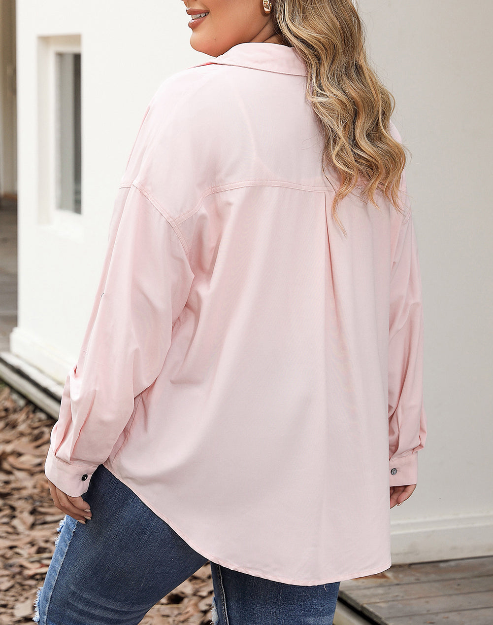 Flap Pocket Tab Sleeve Button-Down Plus Size Shirt
