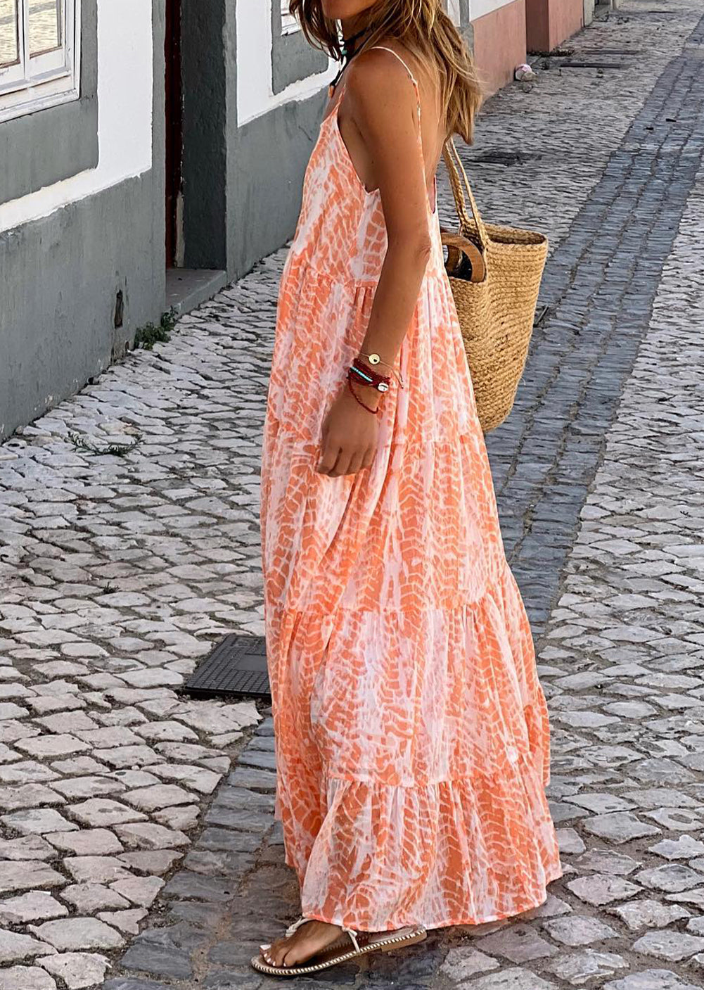 Abstract Print Spaghetti Straps Backless Tiered Maxi Dress