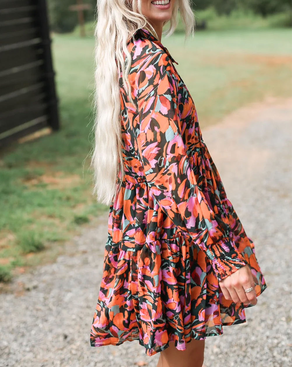Floral Smocked Bishop Sleeve Tassel Mini Dress