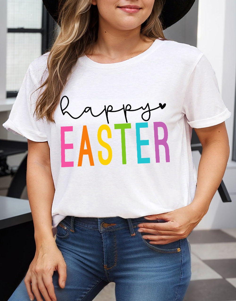 happy EASTER Graphic Crewneck Plus Size T Shirt
