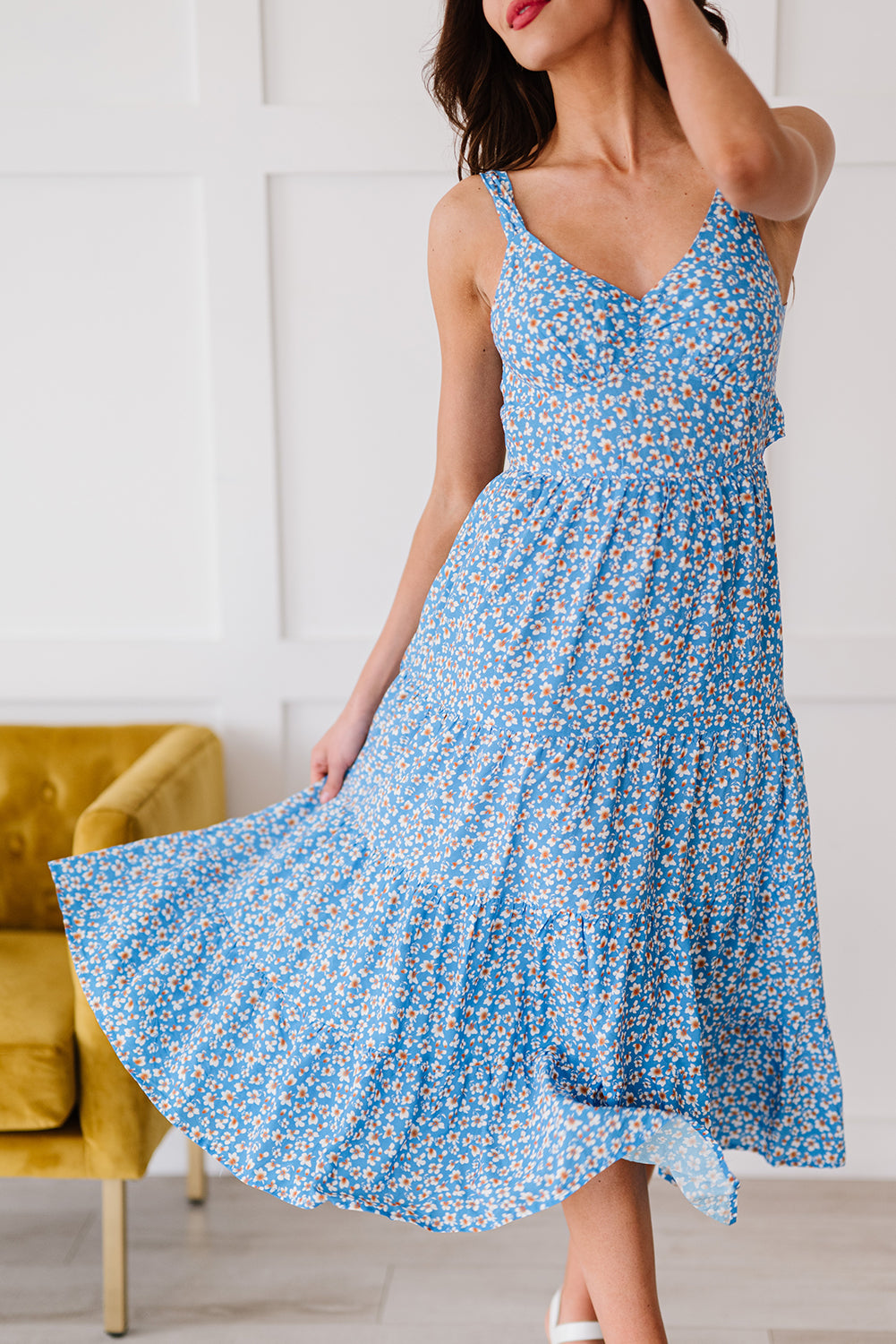 Stroll around a resort in this Floral Tie Back Long Dress Fit and flare design brings a sexy slender silhouette Sexy v neck, hammock design and tie back bodice The tiered design makes this long dress more layered sense This floral dress is highly recommended for the summer holiday and you can find more from our wholesale dresses 100%VISCOSE