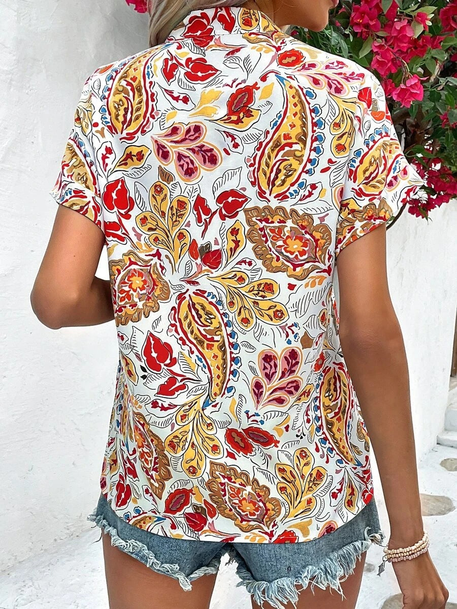 This printed blouse is flattering to most body shapes, different colors and sizes on offer