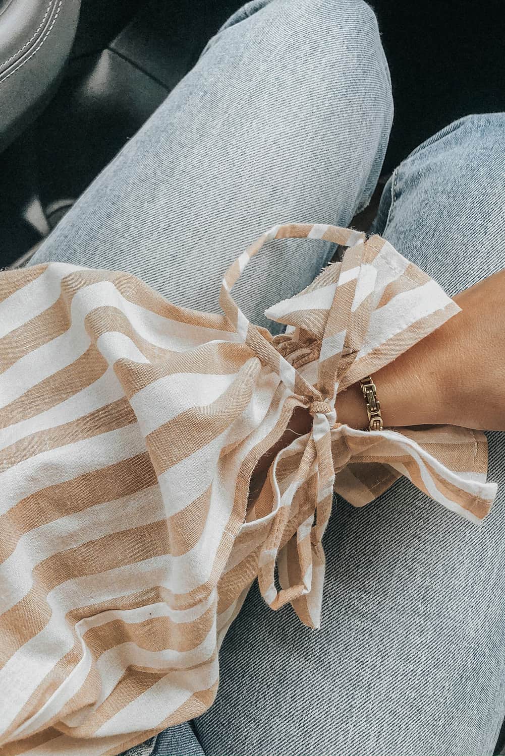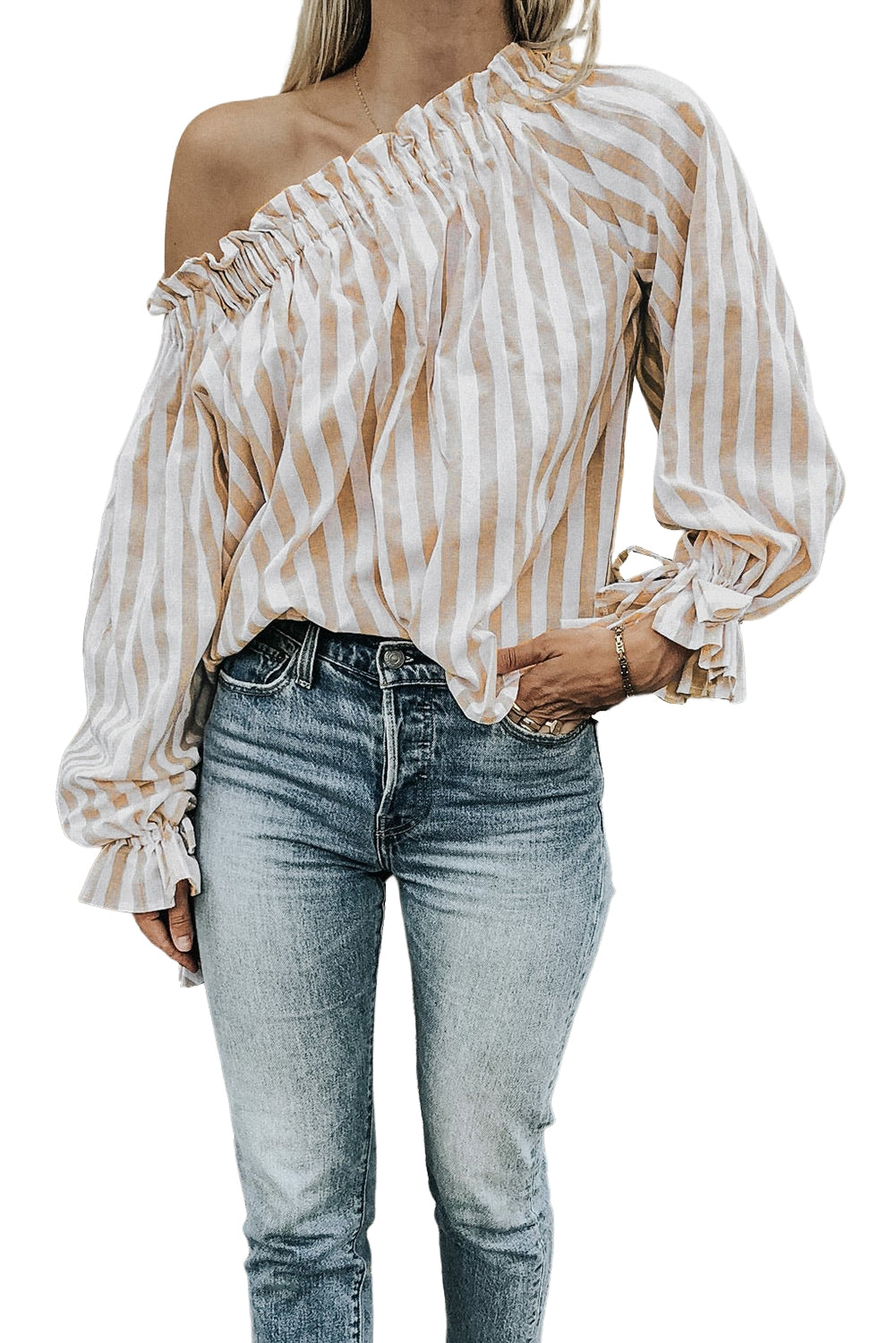 - This Stripe Print Frilled Elastic Off Shoulder Top is sexy and graceful