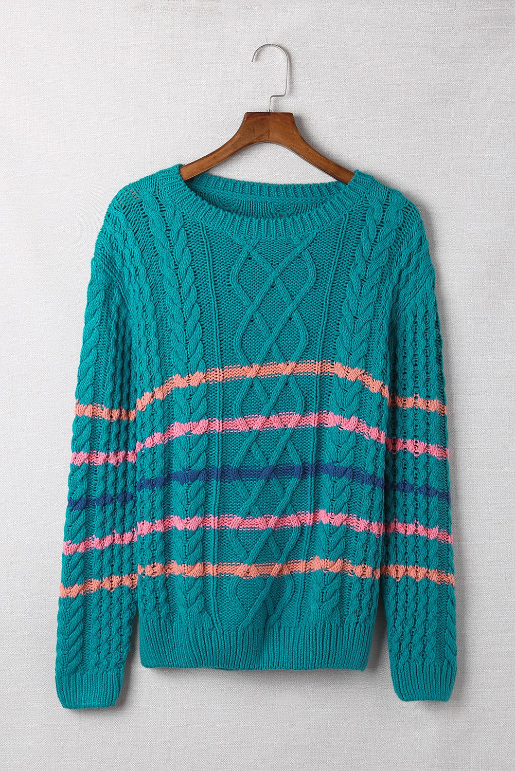 - It includes a crew neck, long sleeves, regular fit, and twisted cable knitted pattern