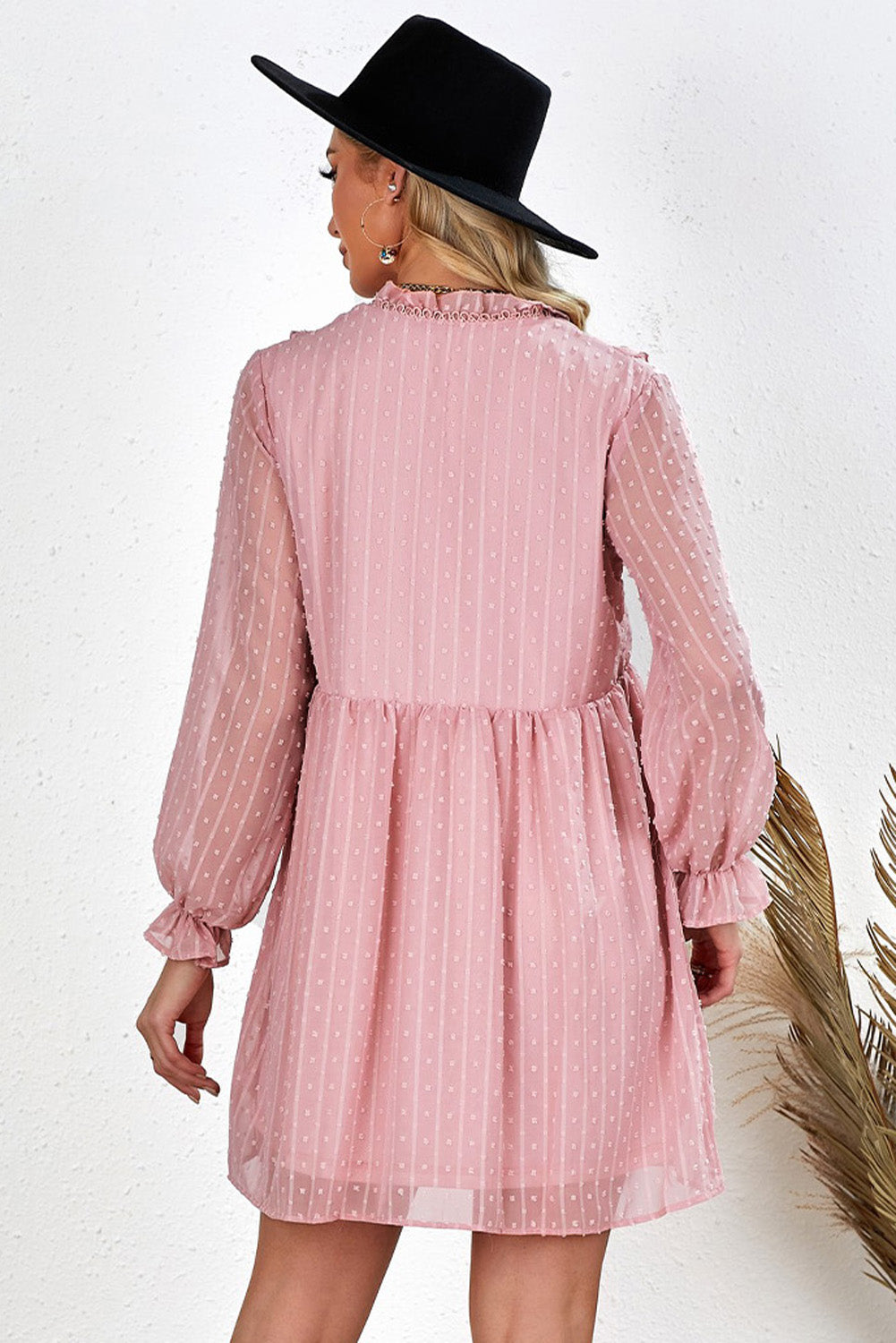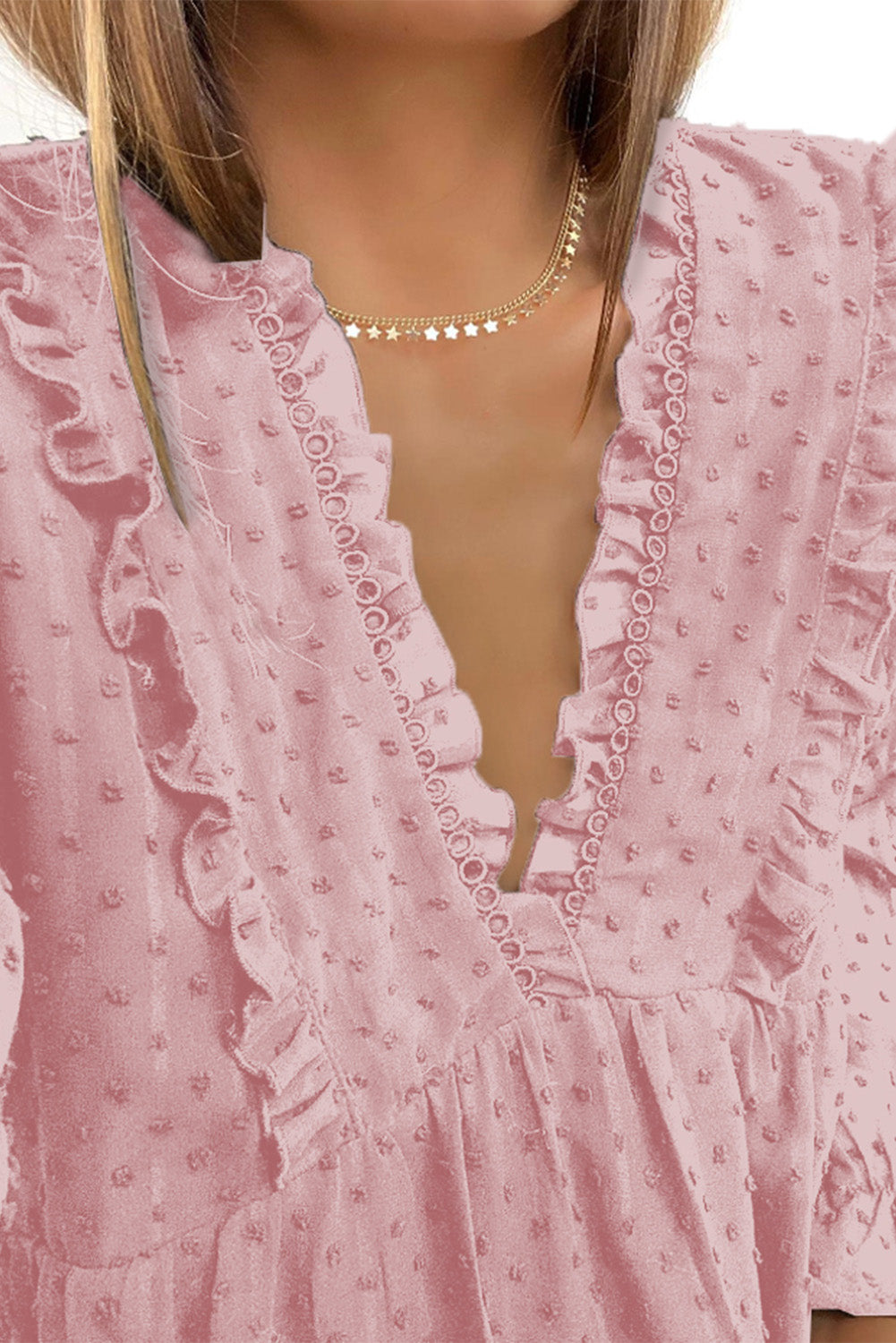 •Ruffled v neckline is very chic and perfect to show wearer’s charm